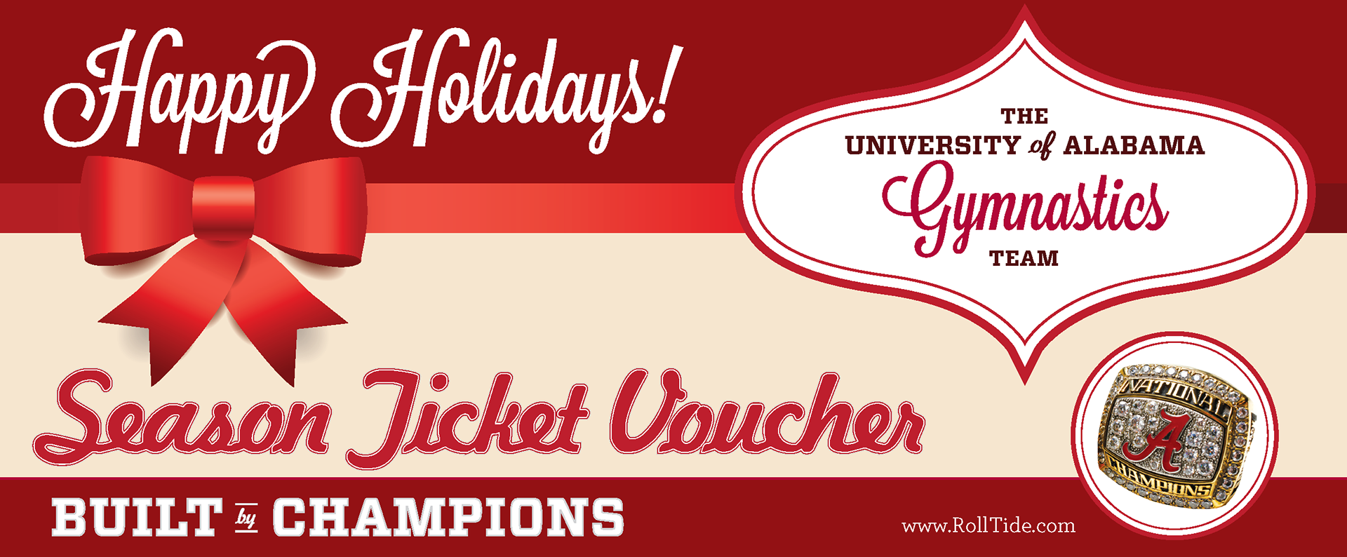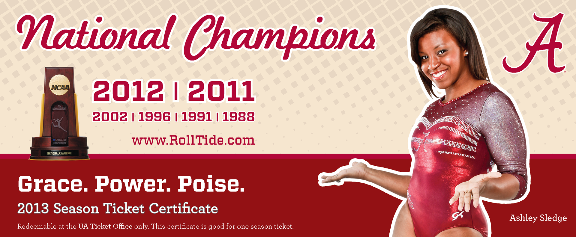 Comp for a season ticket voucher for the University of Alabama Women's Gymnastics. 2012